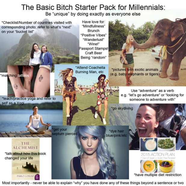 This bitch is doing the same thing here. All that’s missing is an Instagram filter and an elephant-themed tattoo.