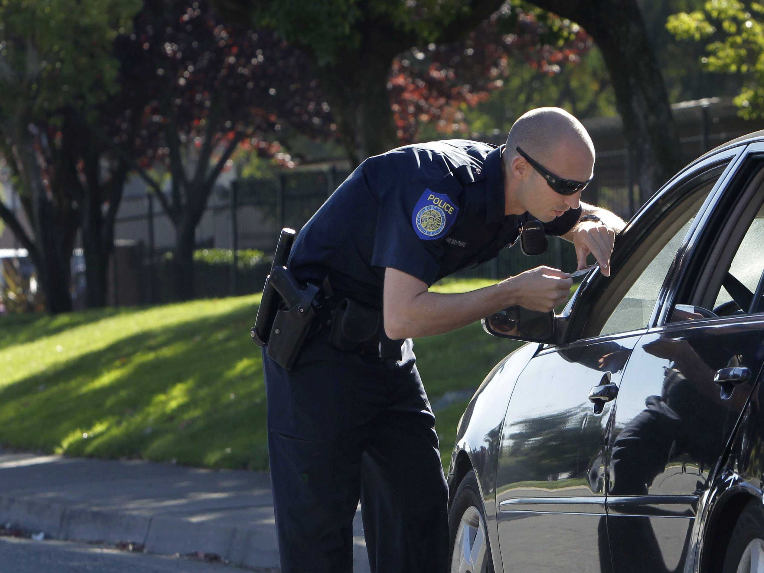 He’s got one hand on the pommel of his handgun and he’s adopted a power stance while you shuffle around for your registration in the glove box, trying to keep your hands visible.