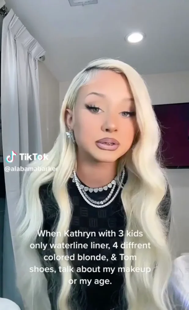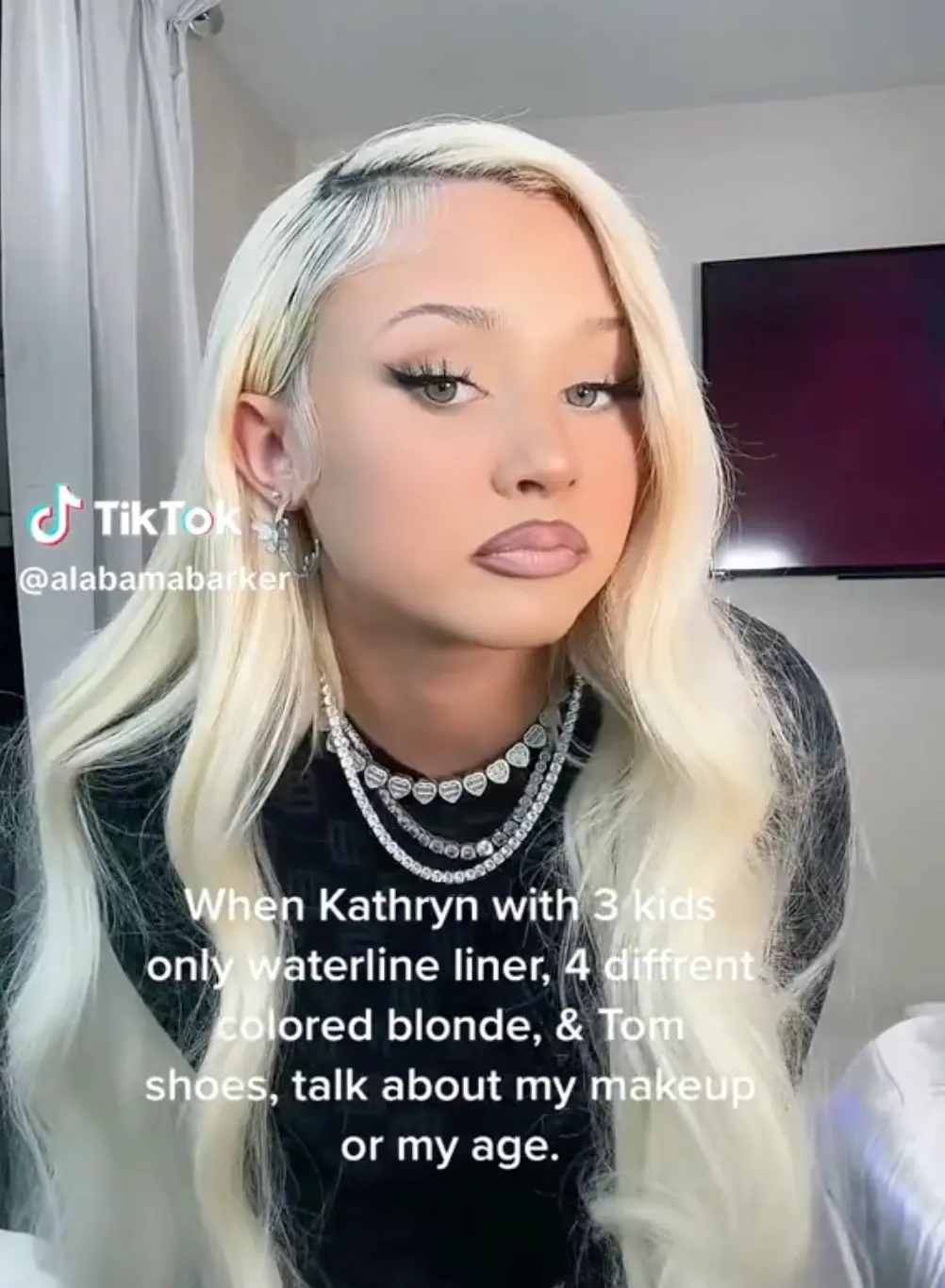 Taking to TikTok, the teen appeared in full glam to hit out at the comments, captioning the short clip, “When Kathryn with 3 kids only waterline liner, 4 different colored blonde & Tom shows, talk about my makeup or my age.”