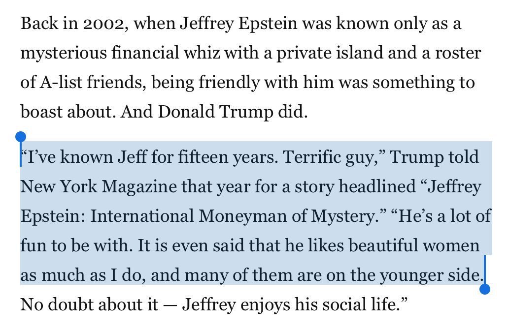 Epstein himself said he was Donald’s closest friend for over a decade. pic.twitter.com/LXlBg4Sdcq