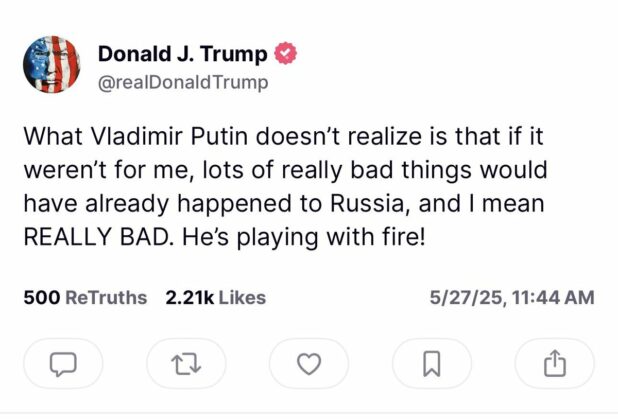 He can escalate, of course. He can send in US troops to fight Russians. He has that ability. But is that what he wants? If not, then threats are not useful, because Russia is not going to respond to threats. I don’t think they will get mad about them, but they will issue statements about how Trump is very emotional, which just seems embarrassing for Trump. If he decides to escalate the war, then he goes down as the guy who started World War III in the face of the most obvious peace deal imaginable, with the narrative being that he did it because he was unable to control his emotions.