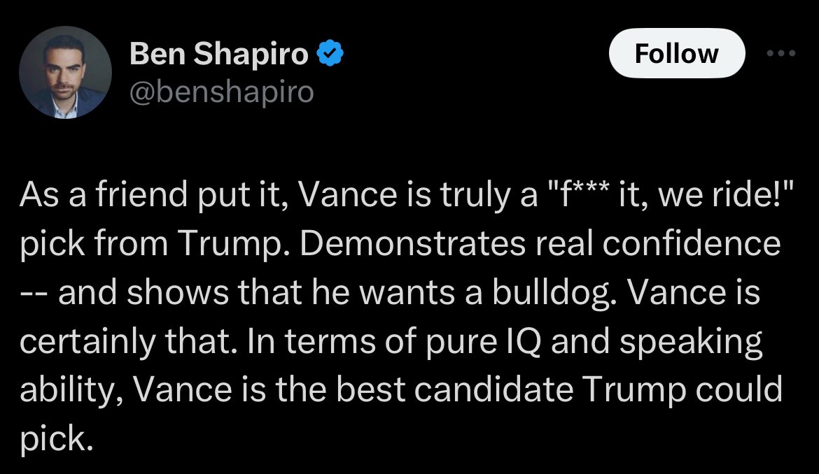Fuck JD Vance, fuck Trump, fuck Trump’s shills, fuck people saying “the election will be real this time” and “the CIA missed,” and most of all: fuck the Jews.