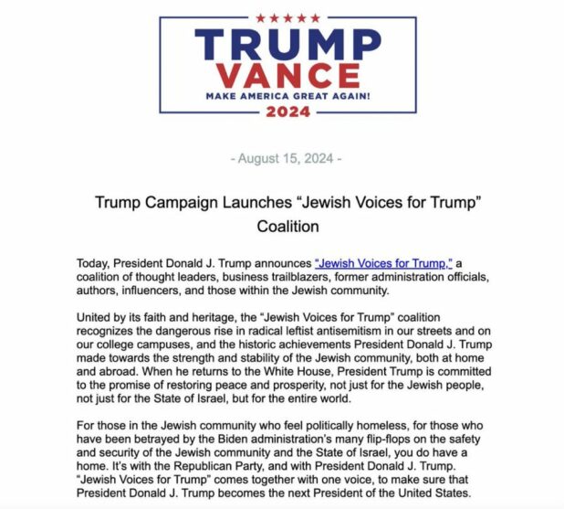 Also on Thursday, Trump launched a “Jewish Voices for Trump” coalition.