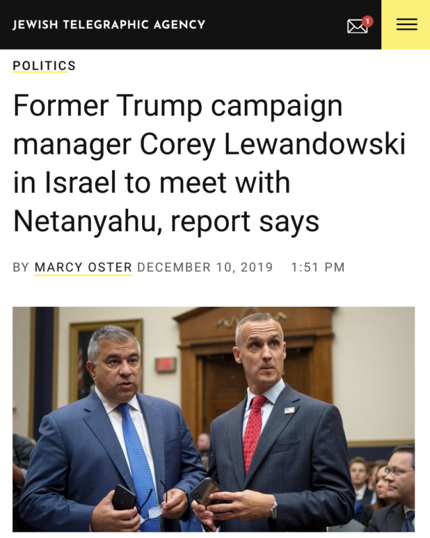 Lewandowski was credited for encouraging Trump to be brash in launching personal attacks on his opponents in 2016, a strategy promoted by influential Republican strategist Arthur Finkelstein. Like Finkelstein, Lewandowski has been in Israel marketing these skills to Bibi Netanyahu.