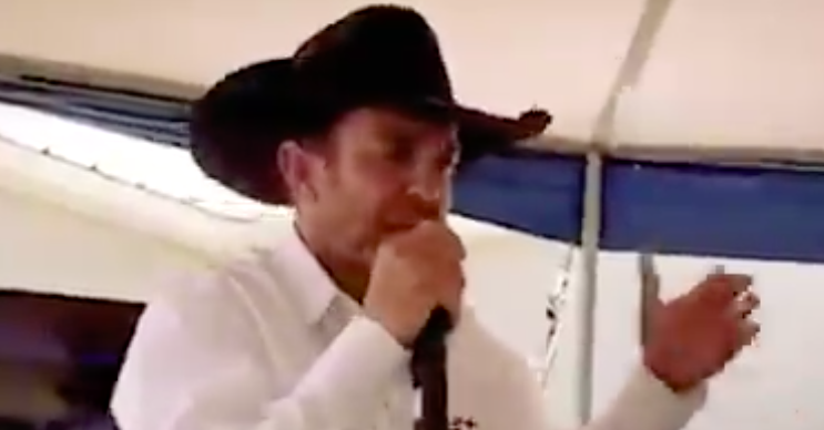 The guy in the video is Couy Griffin, the founder of Cowboys for Trump. He is also the County Commissioner in Otero County, New Mexico.