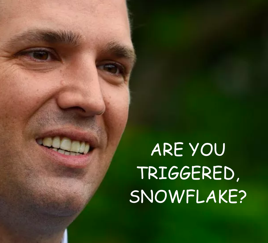 Someone needs to get the memo to Don Jr. that no one is really saying triggered any more. White leftists used to say this about their fake PTSD, then we made fun of it, now they’ve stopped using it outside of universities, so the joke is dead.