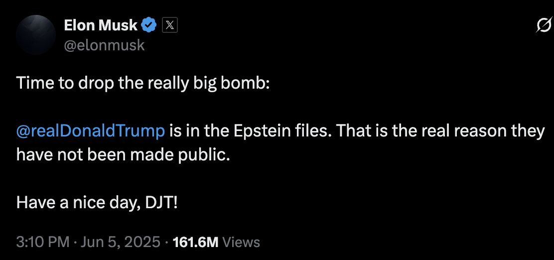 I think “Trump was doing Epstein island” is probably bullshit (maybe it isn’t, I don’t know), but it doesn’t matter if it is or isn’t, because Elon has the ability to make people believe that, because he controls a mind control algorithm.