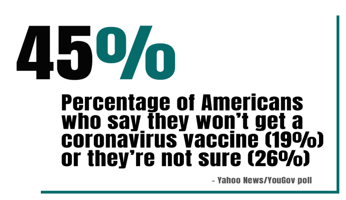 At this point, the situation is so dire that the only thing I care about is Trump winning. But when the 45% of people who don’t want the coronavirus vaccine overlaps more or less 100% with Trump voters, having Trump shill for this vaccine hurts his chances at winning the election.