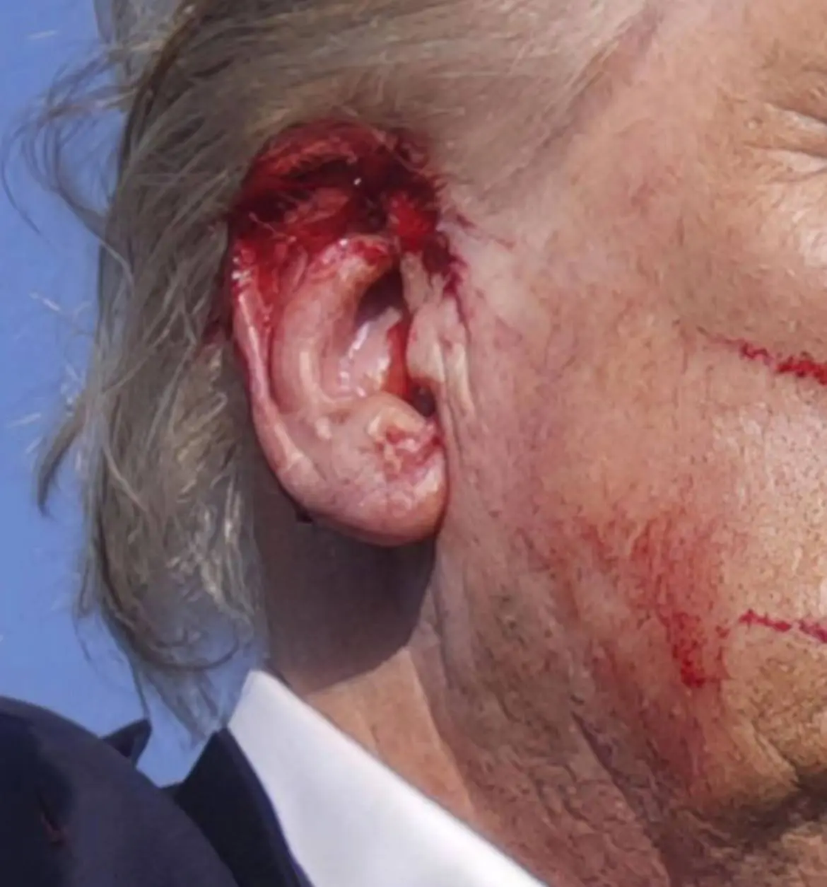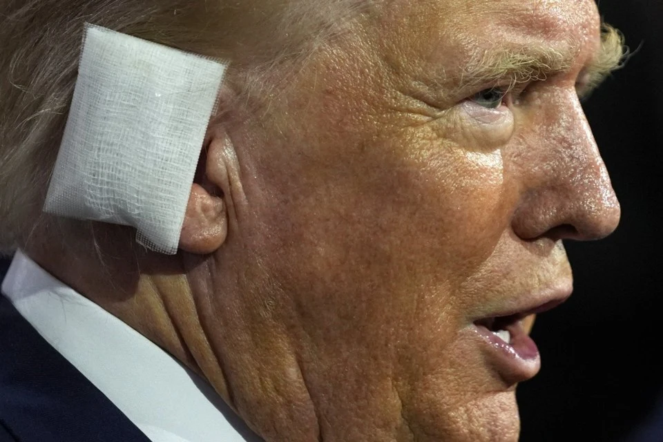 Donald Trump, wearing a bandage partially covering his right ear, appeared in public for the first time since surviving an assassination attempt over the weekend.