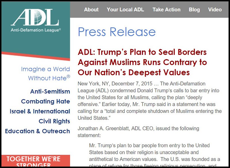 The Jews therefore know very well that letting Israel be flooded with Muslims will destroy that state—and organizations such as the ADL fanatically support Israel and this political position in the Jewish homeland.