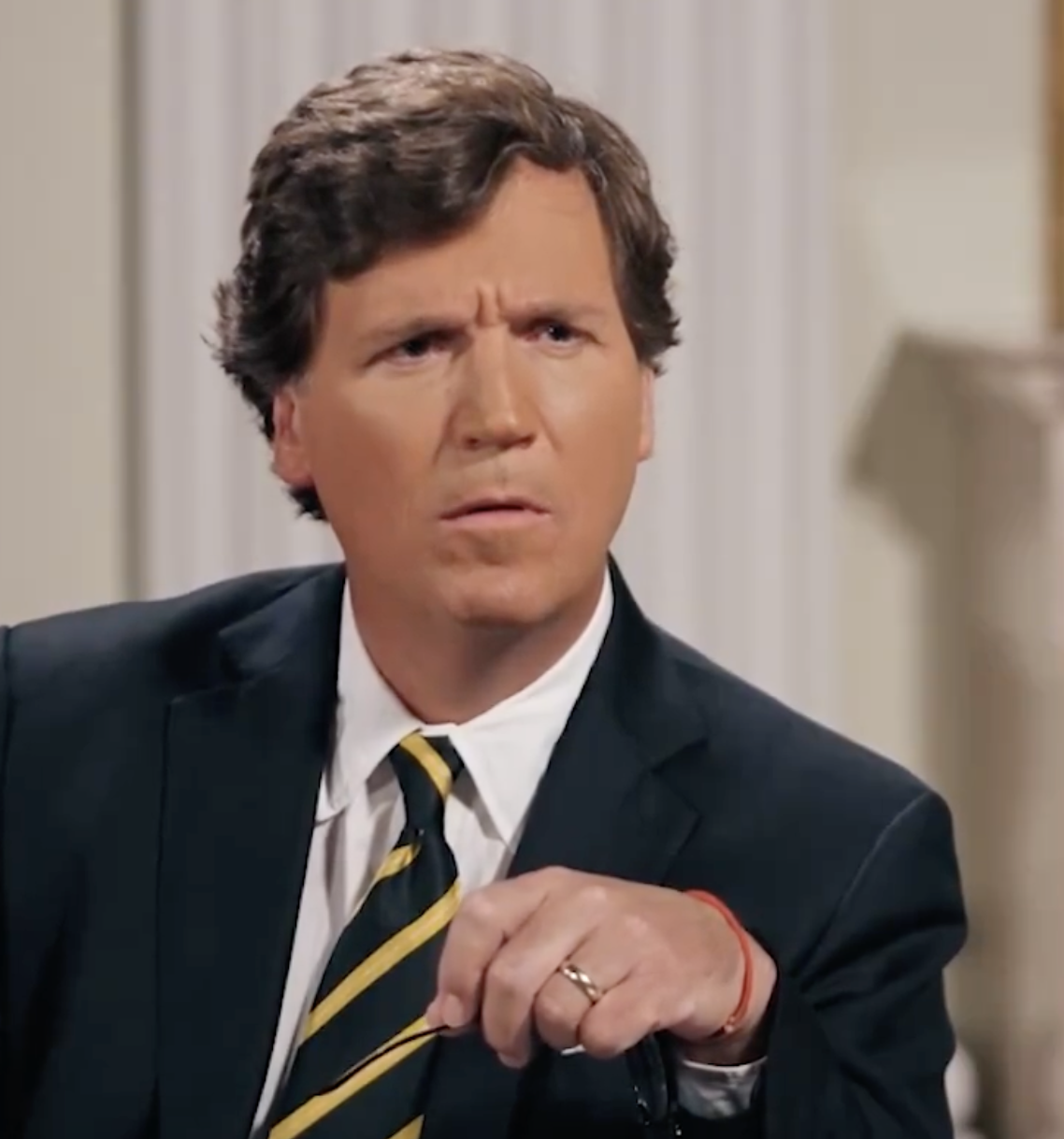 Tucker Carlson was wearing a Kabbalah bracelet, again, by the way.
