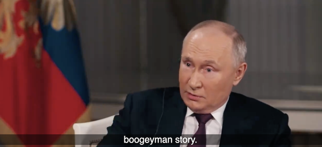 The question of the Nord Stream bombing came up, and Putin jokingly said Tucker did it. Putin then said that it was obviously the CIA. Tucker questioned why, if Putin has evidence the CIA did it, he doesn’t release the evidence and “win a propaganda victory.” Putin then laughed, and said that it’s impossible to win a propaganda war against the United States, because the US government controls the global media.