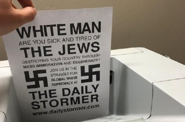 But I was also bothered by the fact that he lied under oath, claiming that he’d never heard of me or the Daily Stormer. Obviously, he has heard of us, and we had probably been on his mind rather recently, as this was not too long after weev’s infamous mass printing troll, wherein countless thousands of printers at universities across the country printed out Daily Stormer fliers (or perhaps I should say “flyers”).