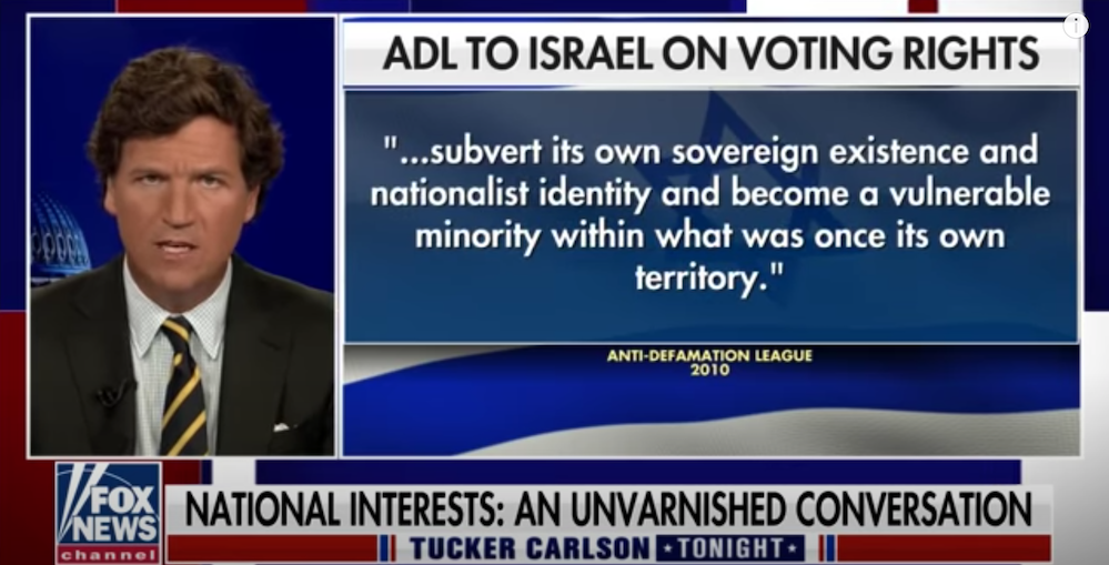 This is the Anti-Defamation League making the exact argument that they are claiming Tucker is pure evil for making. A lot of American conservatives didn’t know this about the Israeli lobby before this segment on Monday.