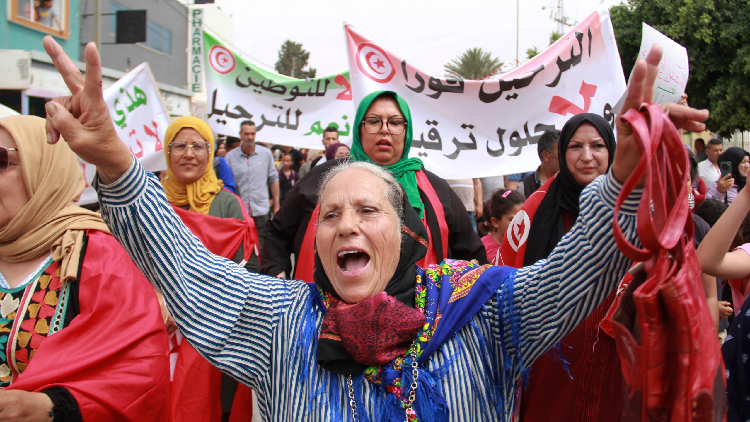 Hundreds of Tunisians marched through the streets of Jebeniana on Saturday to protest the presence of sub-Saharan migrants who have found themselves stranded as the country ramps up border patrol efforts.