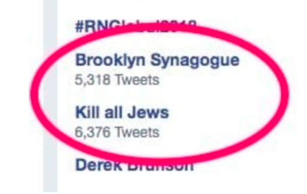 “This was trending as a result of coverage and horrified reactions to the vandalism against a synagogue in New York,” it said. “Regardless, it should not have appeared as a trend.”