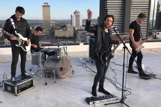 Kyle Yorlets singing with his band.