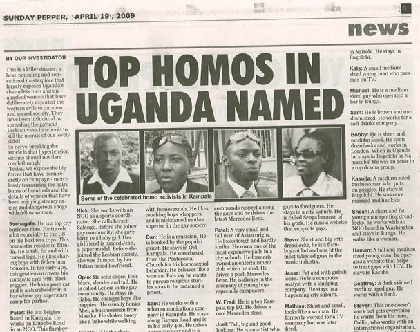 An Ugandan newspaper has published a list of what it calls the country’s top homosexuals, a day after the president signed a new anti-gay bill into law.