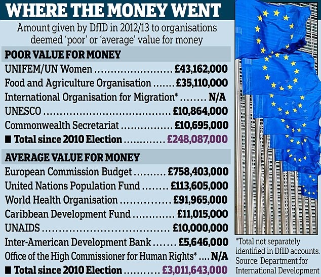 Since the election, the Department for International Development (DfID) has given £3.3 billion to 12 organisations that offer ‘poor’ or ‘average’ value for money.