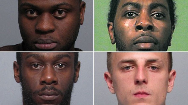 Four men have been jailed for kidnapping and torturing a man who was tied up and burnt with an iron.