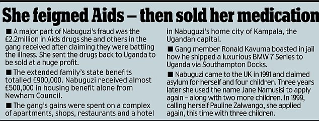 Nabuguzi had also claimed to have HIV and Aids to receive costly drugs which she then sent back to Uganda to be sold to genuine victims at a huge profit.
