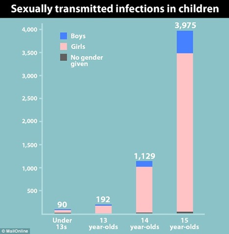 Across the country 5,386 youngsters under the age of legal consent were treated for Chlamydia, gonorrhoea, herpes and other conditions.