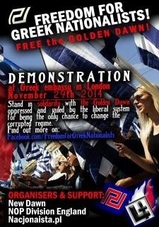 Regular visitors to this website will be familiar with the demonstration which took place in November last year outside the Greek Embassy in London calling for the release of the leaders of the Greek nationalist party Golden Dawn who had been imprisoned on spurious charges that are obviously politically motivated.