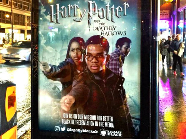 The group, which goes by the name “Legally Black,” redesigned posters for major films and television shows such as Doctor Who, Titanic, Skins, The Inbetweeners, and Harry Potter, and placed them in bus stops across the London borough of Brixton.