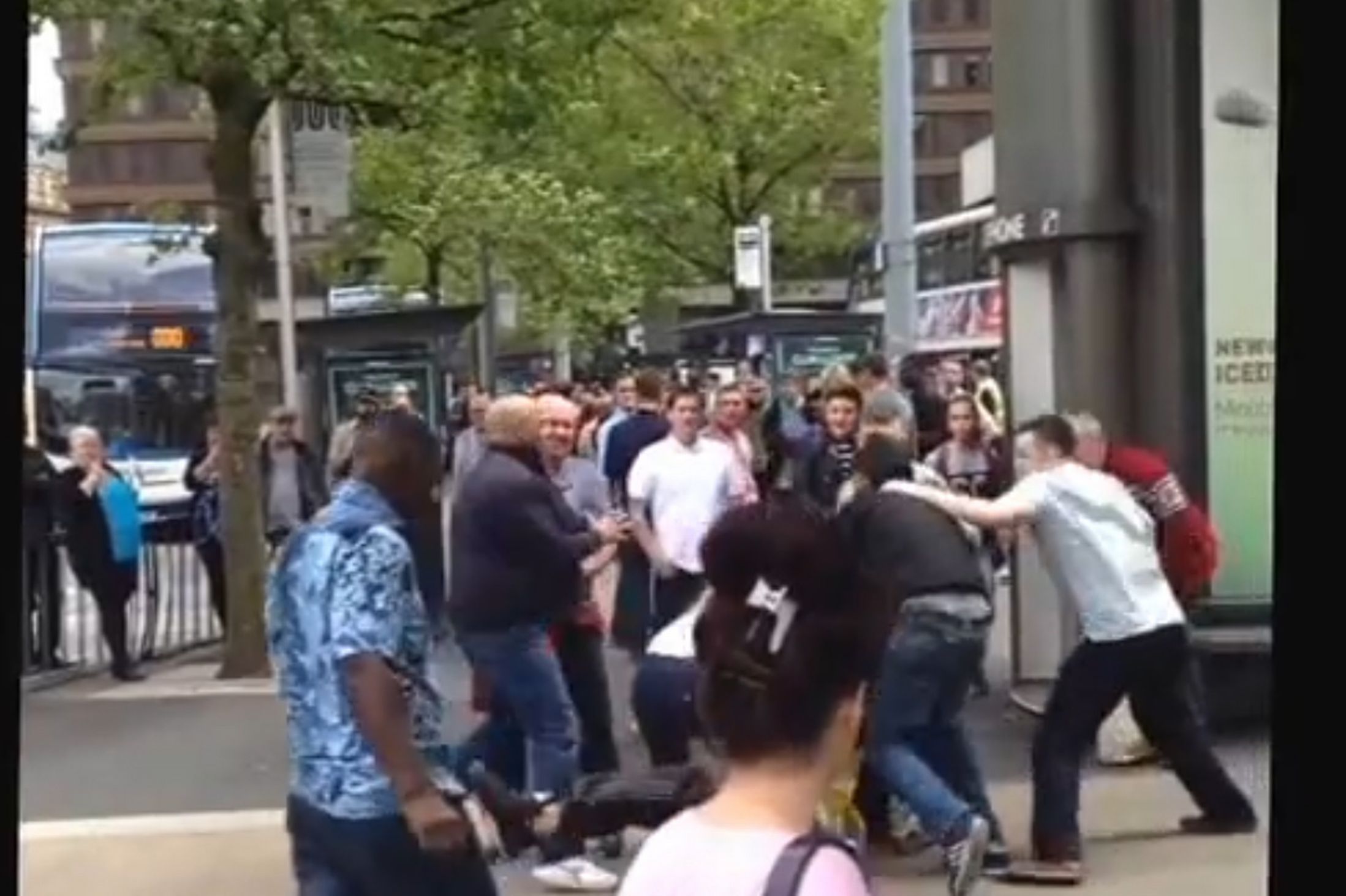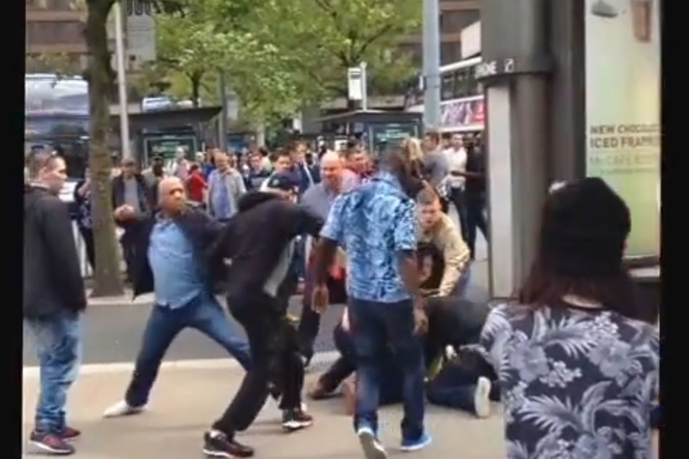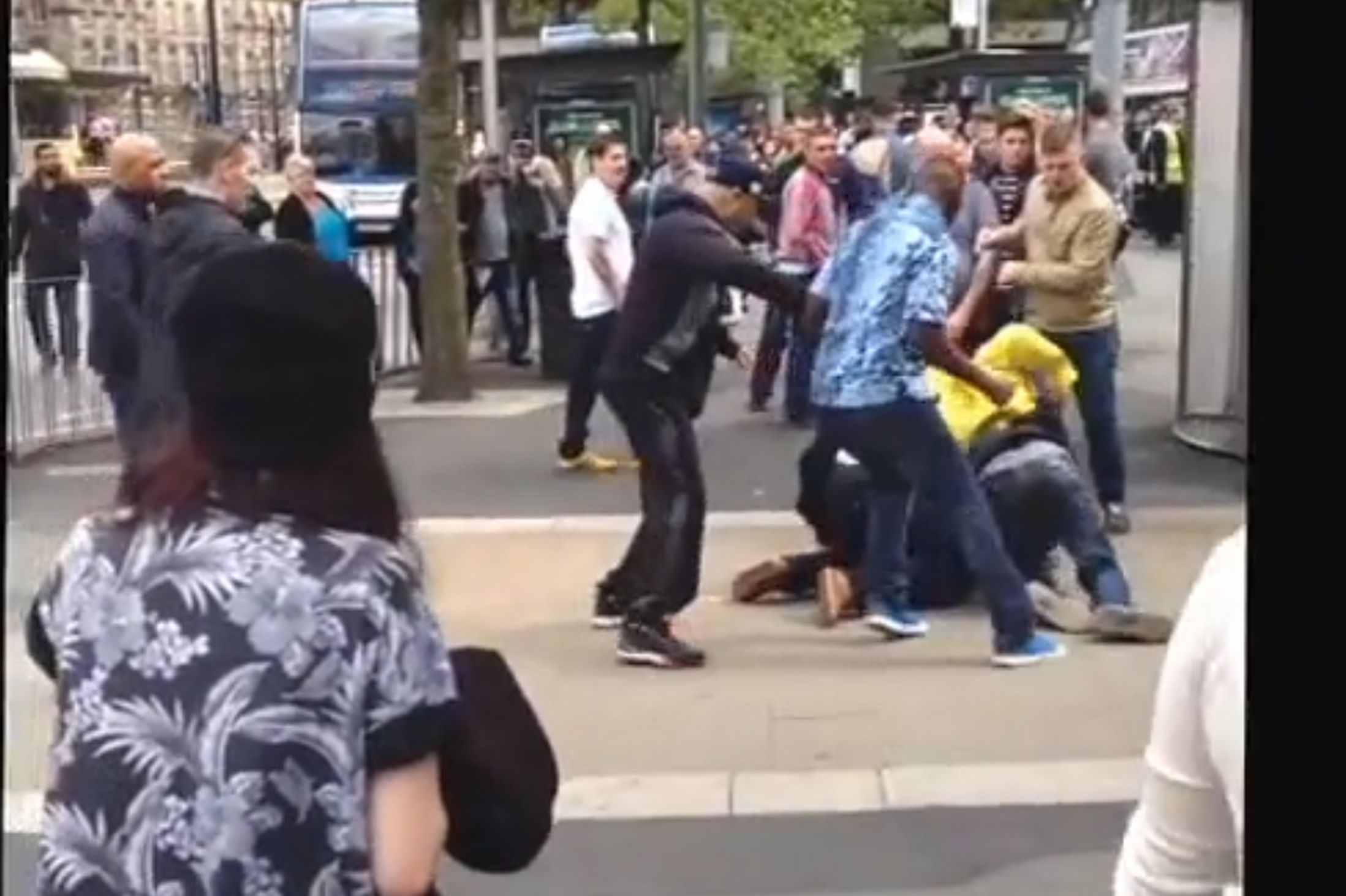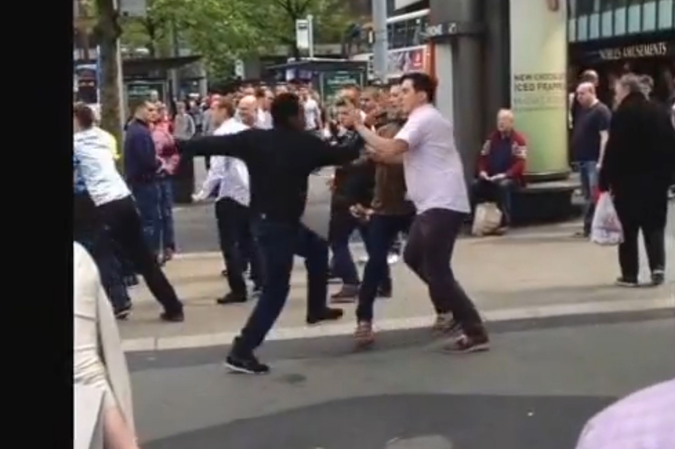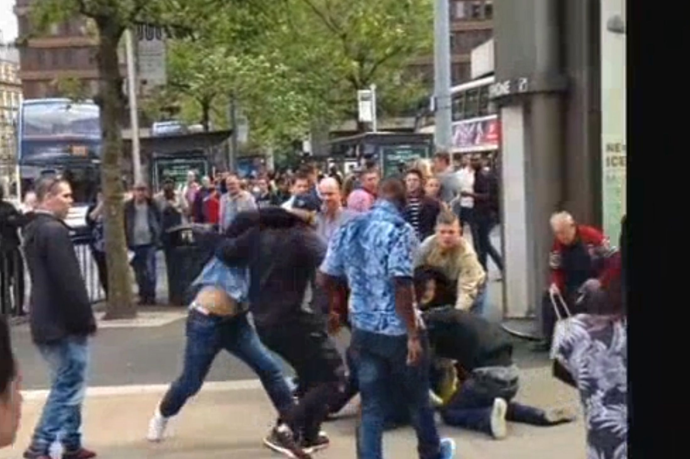 In Piccadilly Gardens, Manchester, a horde of blacks attempted to do their favorite thing and randomly attack a group of Whites on the street. This time, the Whites fought back.