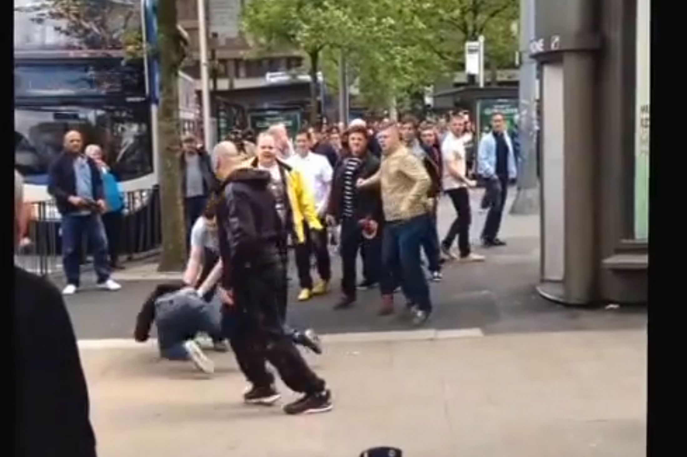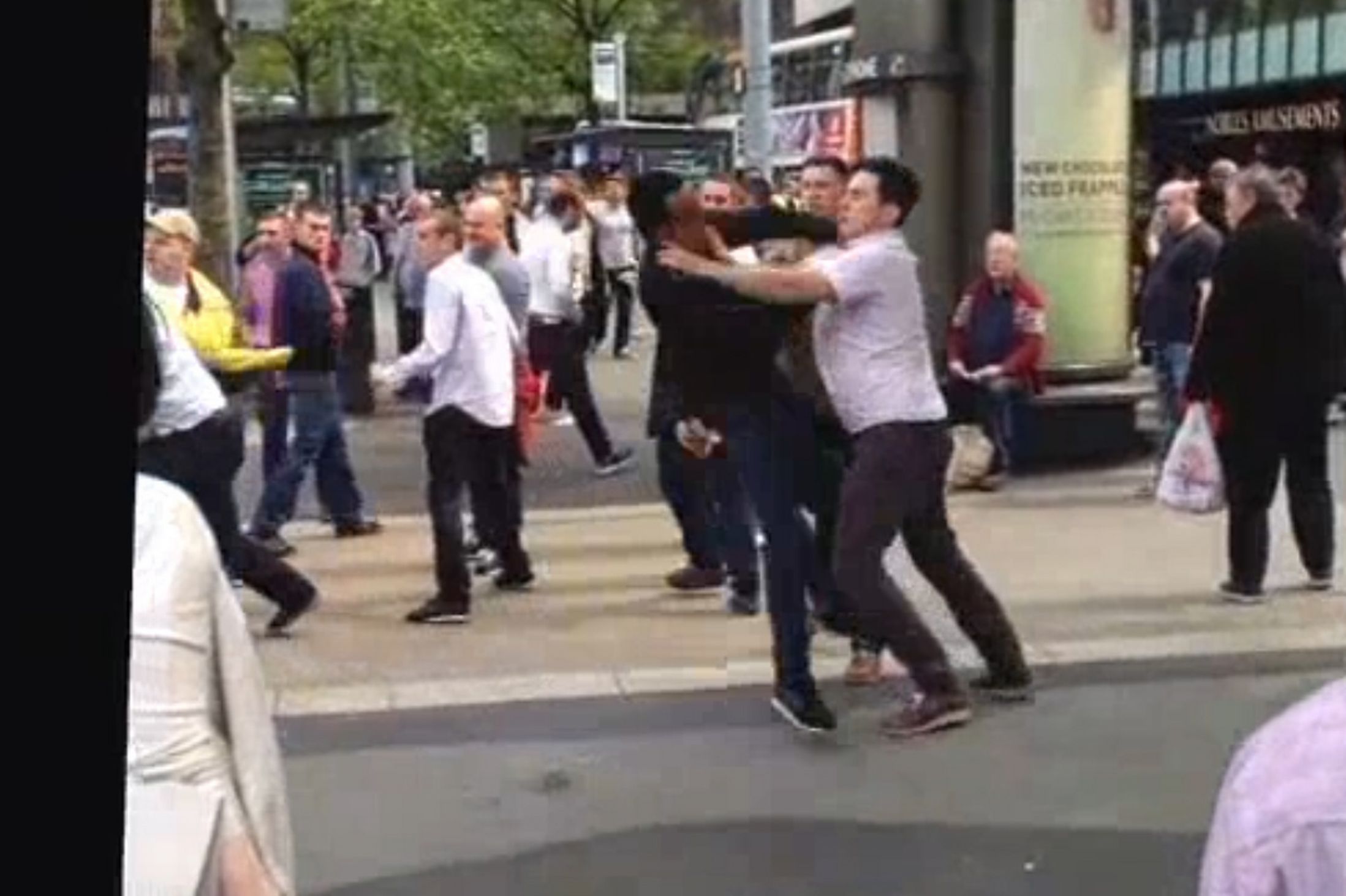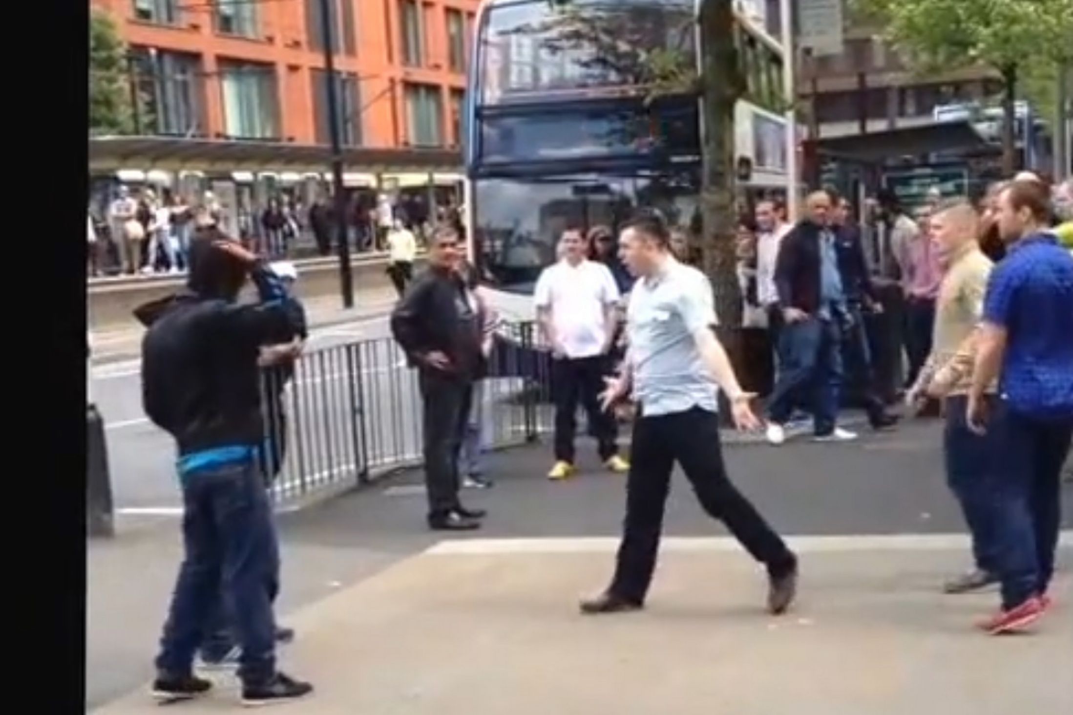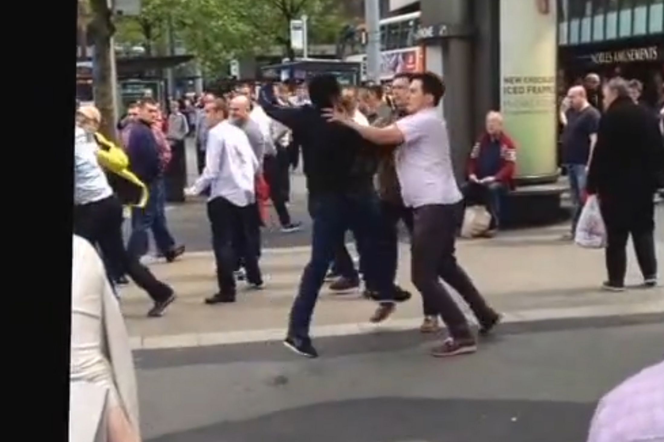 In Piccadilly Gardens, Manchester, a horde of blacks attempted to do their favorite thing and randomly attack a group of Whites on the street. This time, the Whites fought back.