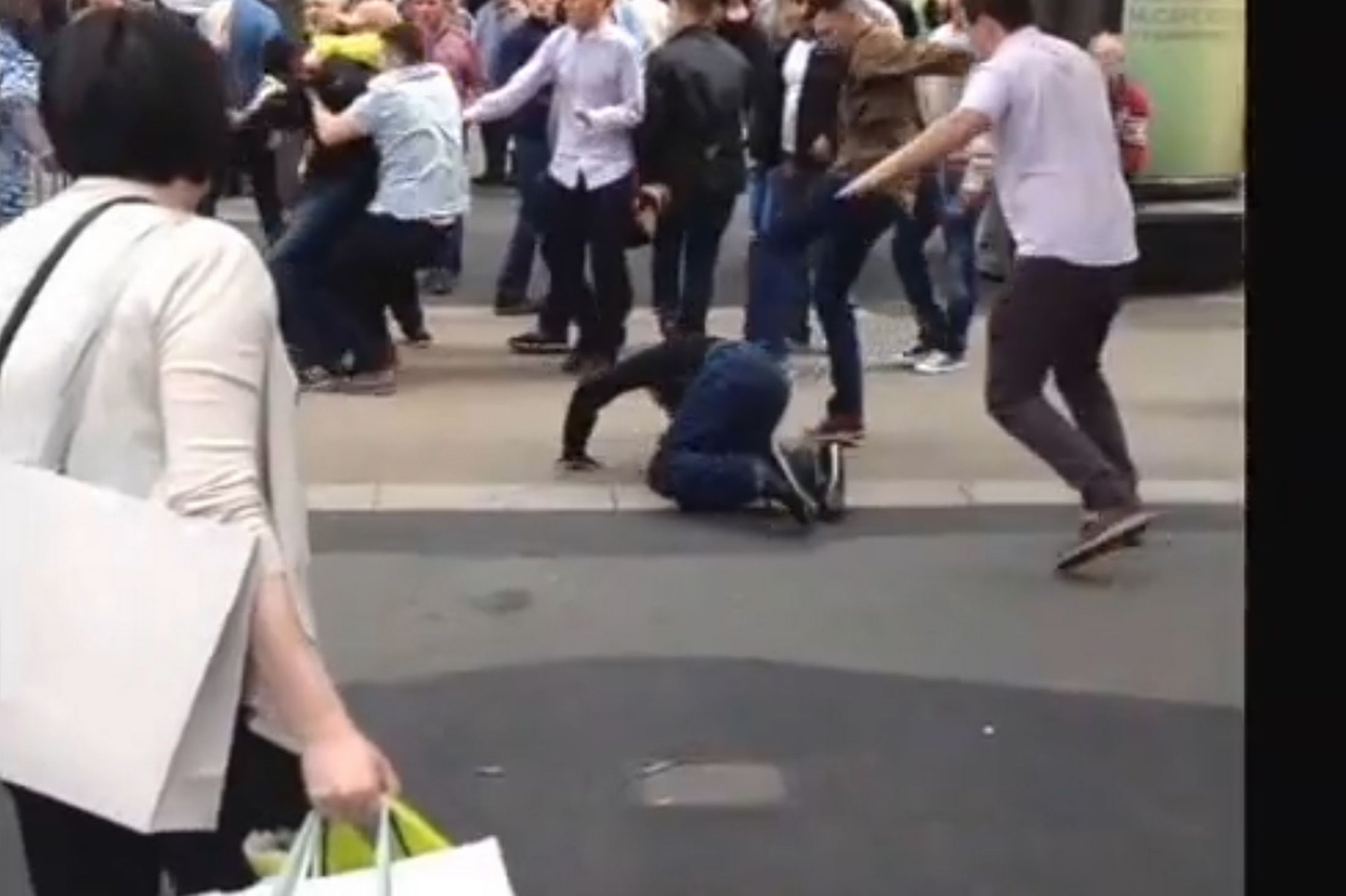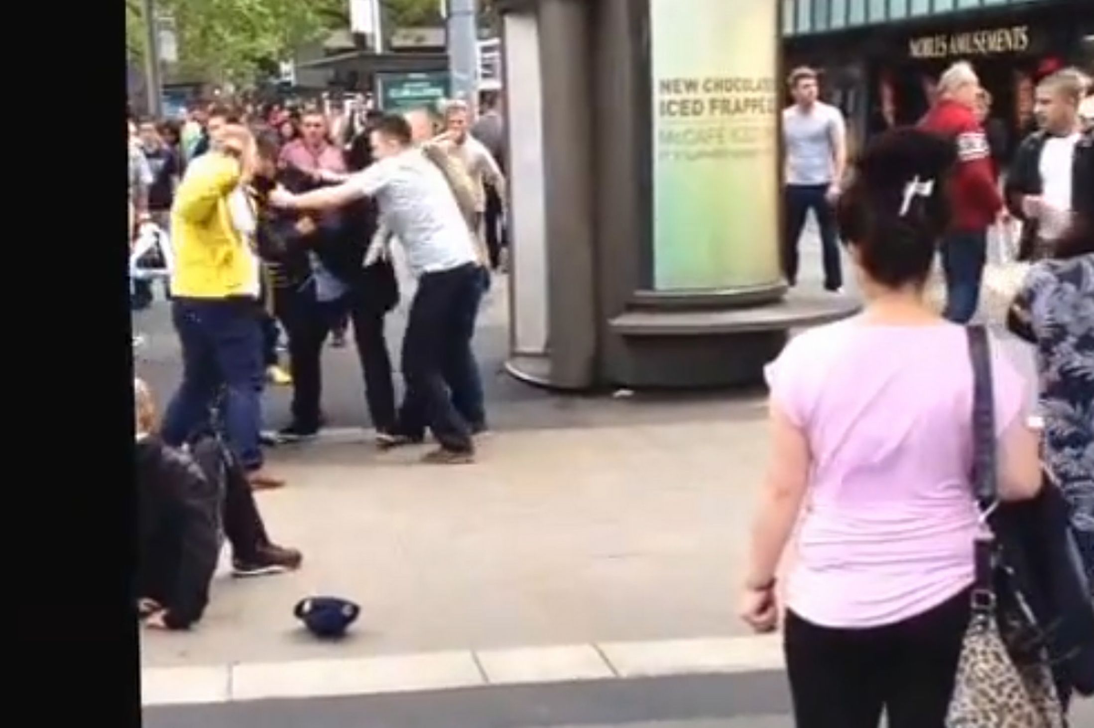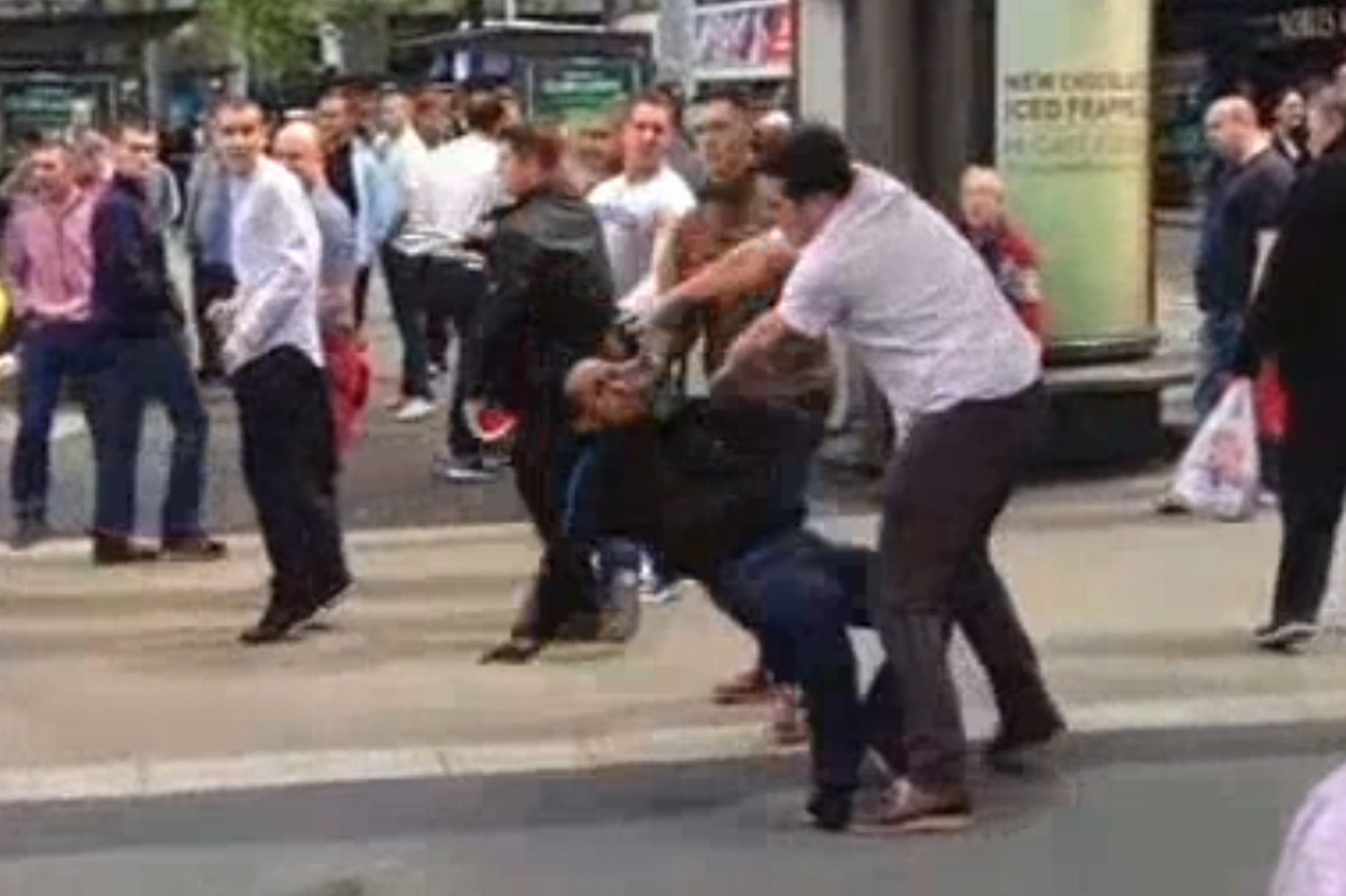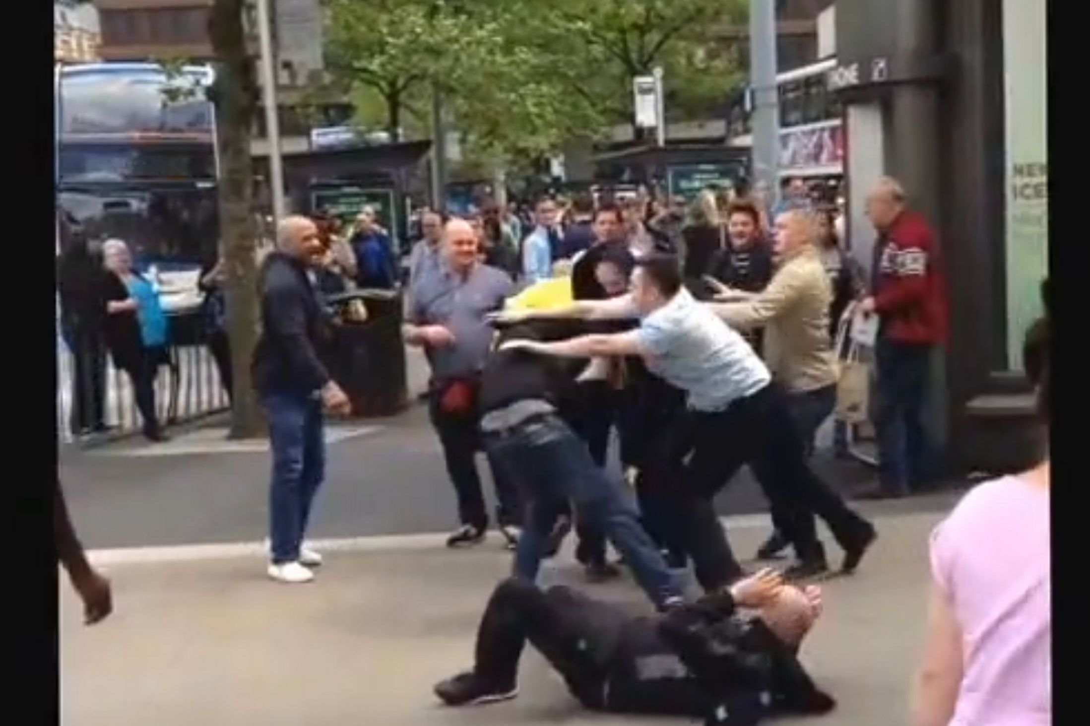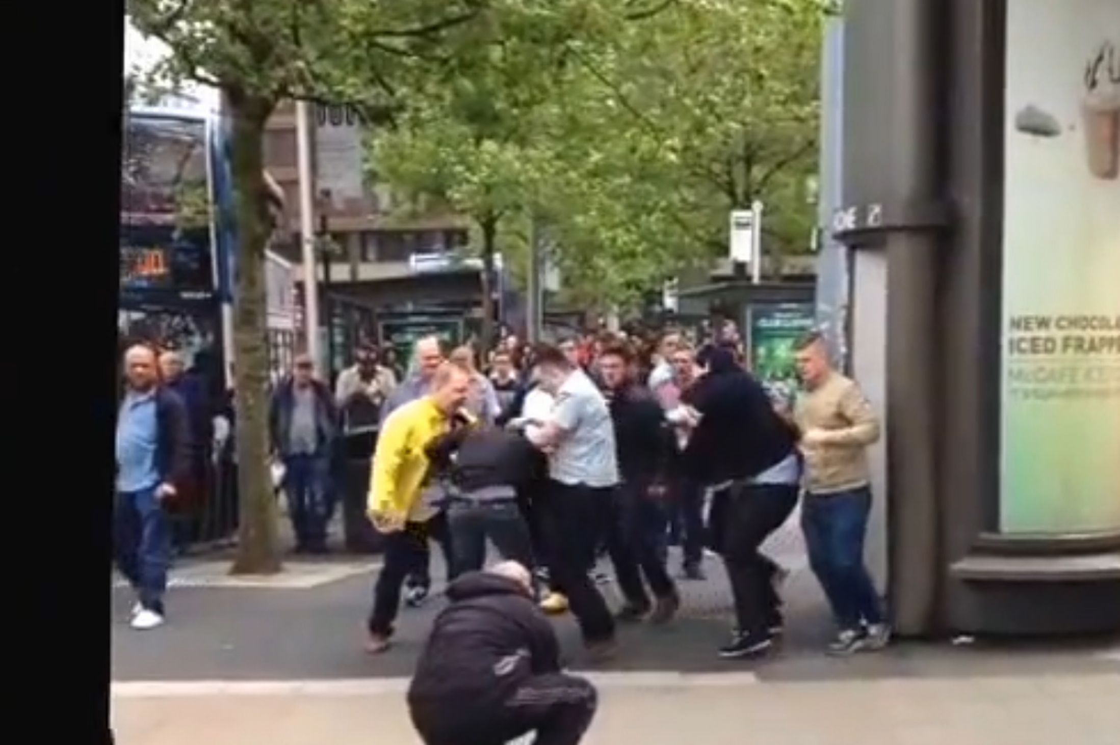 In Piccadilly Gardens, Manchester, a horde of blacks attempted to do their favorite thing and randomly attack a group of Whites on the street. This time, the Whites fought back.