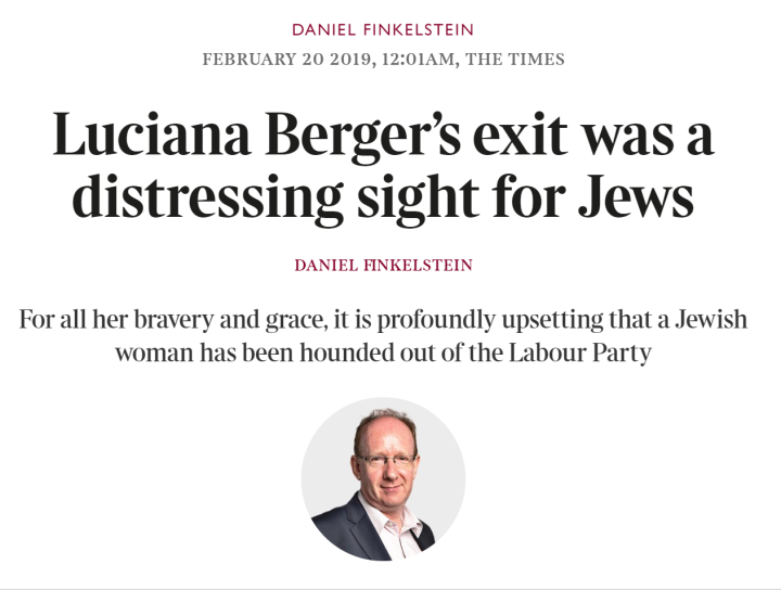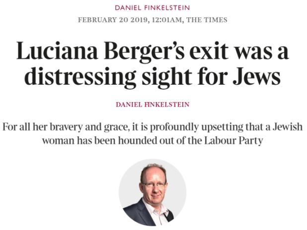 Yet top Jew, milord Daniel Finkelstein offered an interesting revelation in a recent Times article as he reflected on the departure of the monstrous Luciana Berger from the Labour party.
