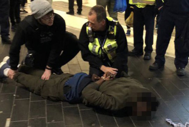Officers rushed to the scene and arrested a 26-year-old man from East Ham on suspicion of causing actual bodily harm, common assault and possession of an offensive weapon, according to British Transport Police (BTP).