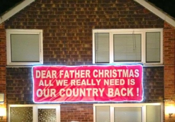 A Ukip supporter was visited by police for putting up a confrontational Christmas sign outside his house.
