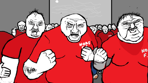 In fact, nothing would have happened at all if they weren’t snitched on by a fellow Bong in the crowd by the name of Mr. Ball. The nonce even brought his she-hog along – to a football match. What was he thinking?