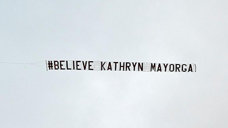 “Believe Kathryn Mayorga,” the banner read.