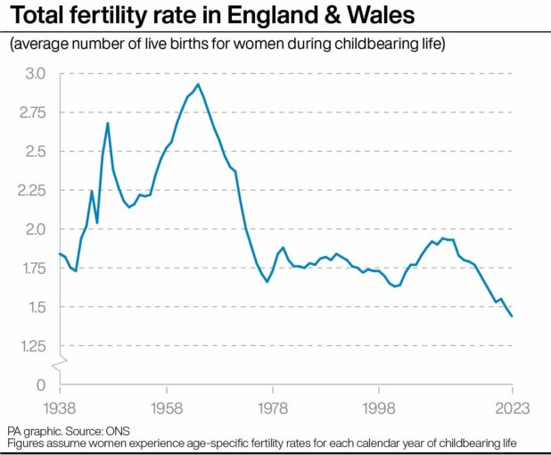 This meant the total fertility rate in 2023 was the lowest recorded since 1938.
