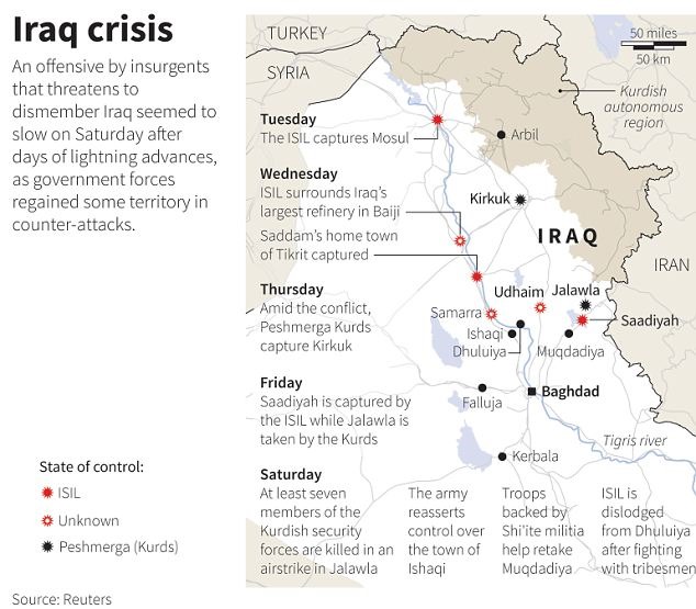 He said some were ‘inevitably fighting with ISIS’ – the extremist group whose barbaric tactics and seizure of a huge swathes of Iraq have provoked international outrage.