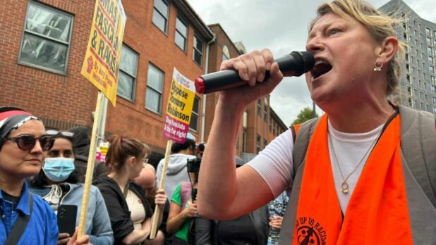 Outside an immigration center in the Walthamstow area of east London, which saw a large gathering, a counter-protest leader shouted, “fascists gone” to which a crowd of hundreds responded: “off our streets.”