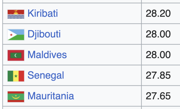 And these are hot countries (where people live and do not die of heat):