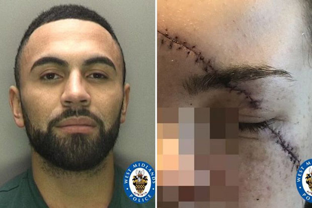 Keelan Burke left the 22-year-old with a seven-inch wound running from the middle of her forehead down her cheek after a fight broke out in Bentley Lane, Willenhall.