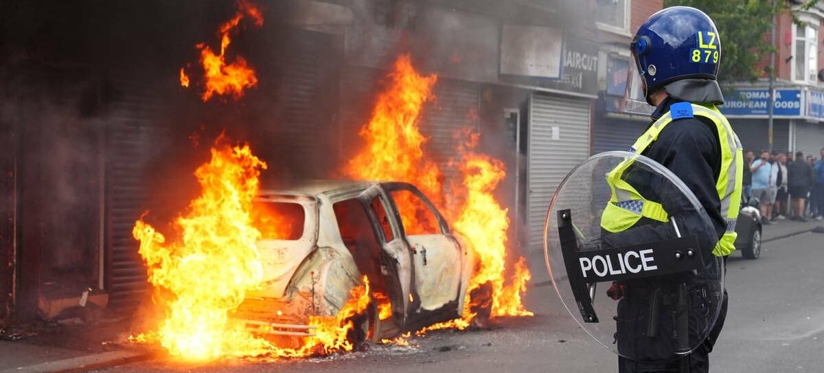 In August, prosecutors had told the judge Peter Lynch shouted “racist and provocative remarks” at police outside a migrant hotel, which they argued ‘crossed the line’ into criminality and helped incite the riot.”