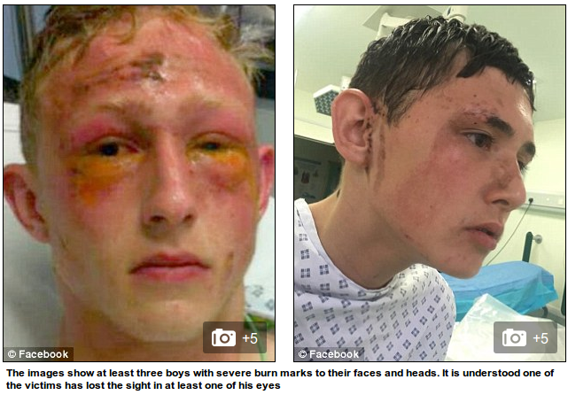 The five teenage victims were all rushed to hospital with burns injuries following the attack.