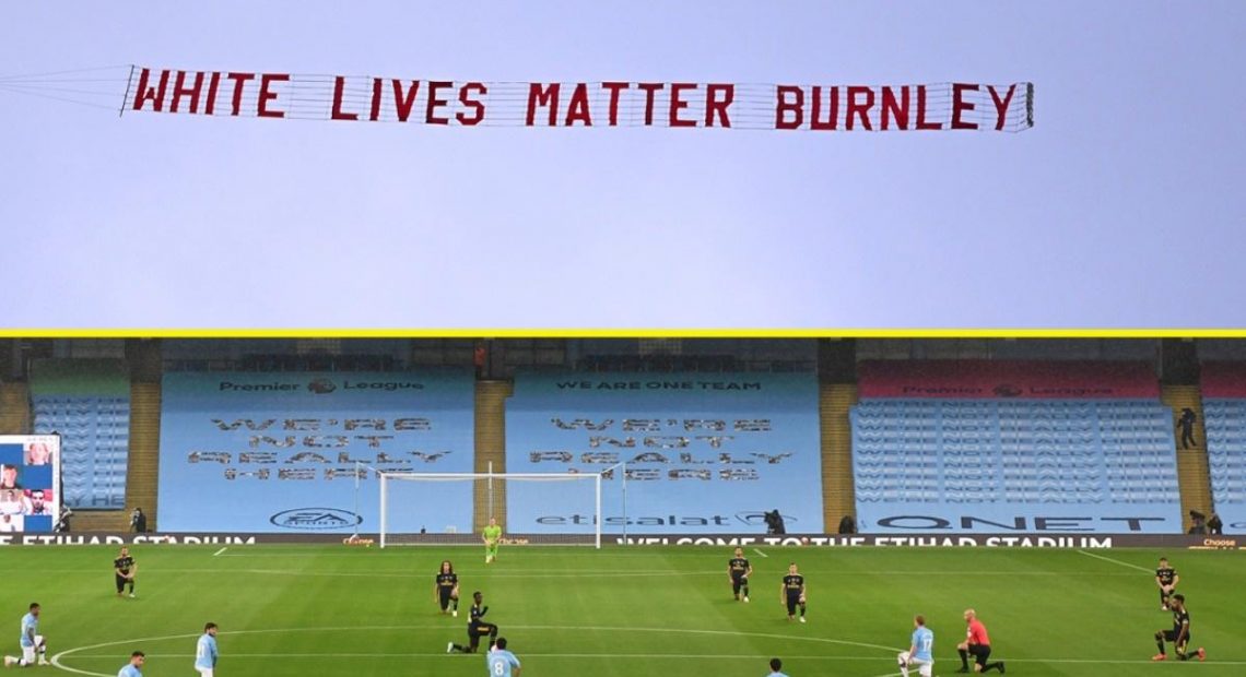 The Suicide Squad, a group of far-right Burnley fans, are believed to have crowdfunded for the flight and its message ‘White Lives Matter Burnley’.