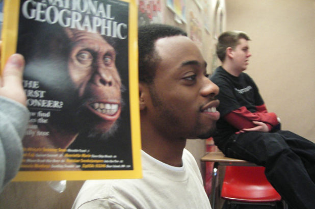 It’s quite funny, though, that the woman who brought up the negro-monkey connection – and who happened to be nearby, waiting to pounce upon a perceived racial slight – was black.