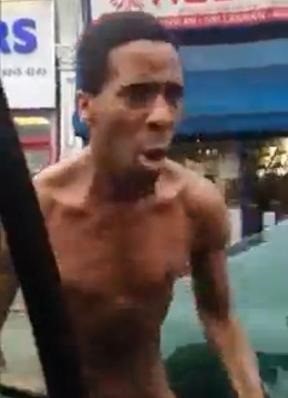 Bare-ly believable footage has been revealed of an angry naked man chasing a car in Hither Green and then attacking a punter at a nearby bookies.