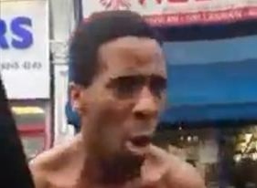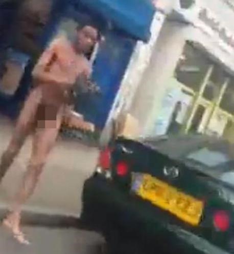 The nude walker was spotted hanging out on Hither Green Lane and the video, apparently taken earlier this month, shows the occupants of a car baiting him with a series of vile abusive taunts, appearing to hurl a newspaper at him.