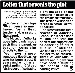 The letter supposedly described how activists could stir up Muslim parents to oust secular headteachers. Park View and its chairman of governors, Tahir Alam, were named in the letter as being at the centre of the plot. Mr Alam and the school have furiously denied the claims as “fictitious”, “Islamophobic” and a “witch-hunt”.