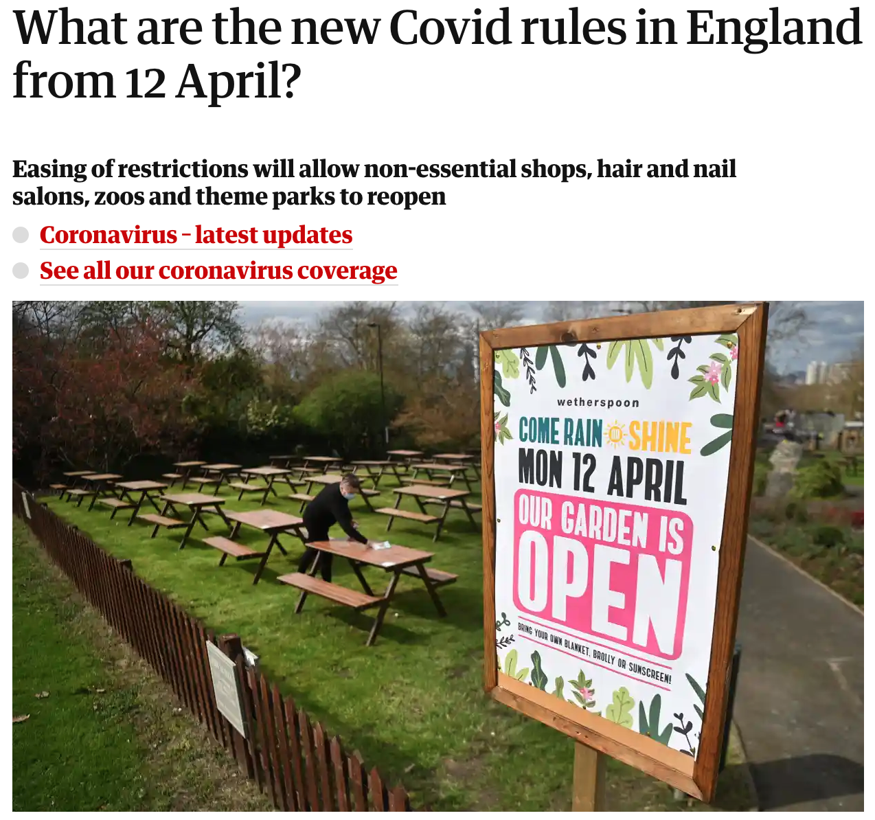On Sunday, The Guardian published an article looking into what people will be allowed to do from April 12, calling it “an ease of restrictions.”
