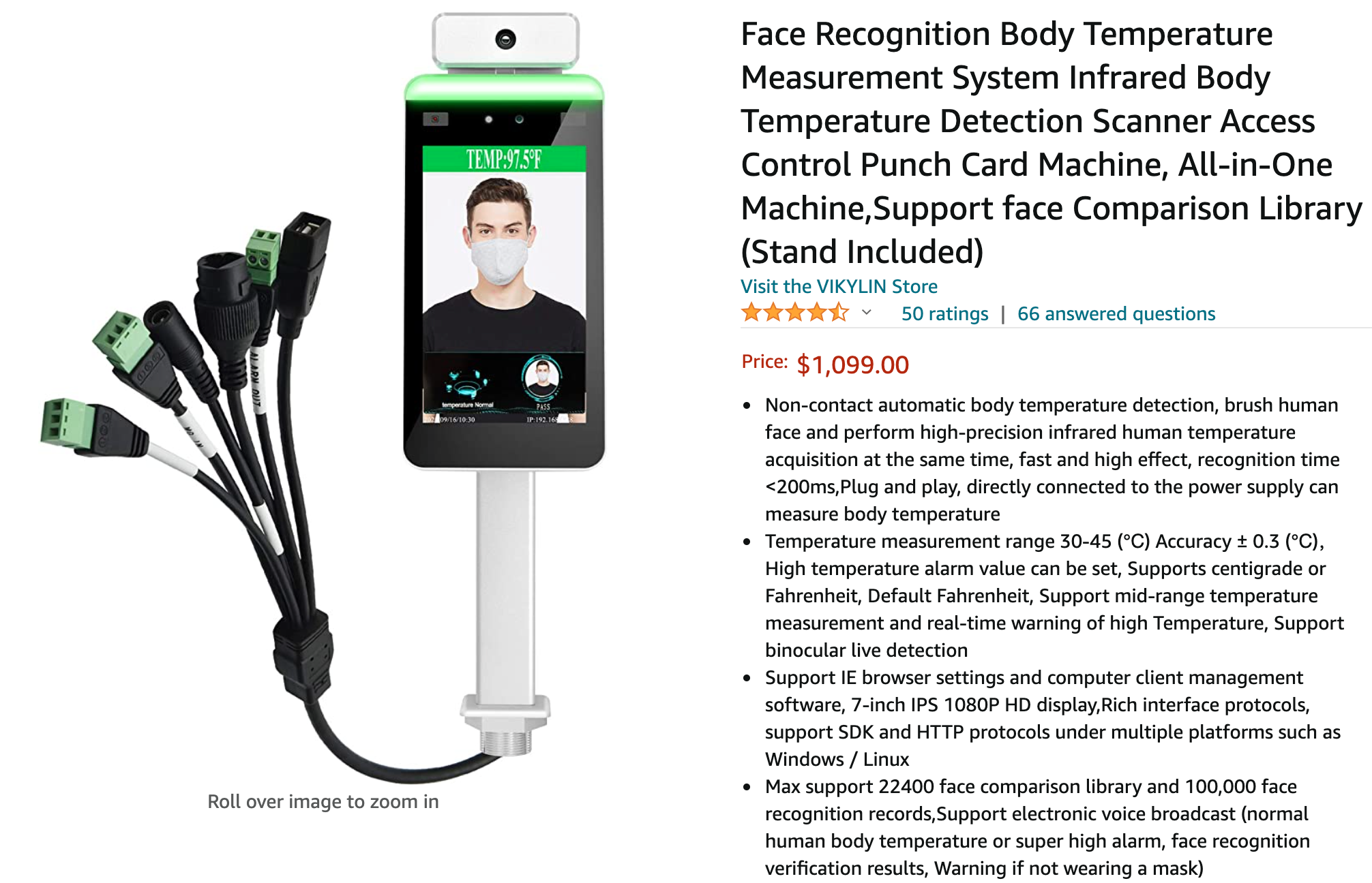 Alongside the QR codes, they’re also going to start rolling out face-scanning temperature machines that look like this: